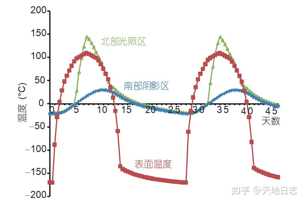 月球表面温度和塌陷熔岩管底部温度对比图